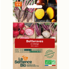 3,30 €Descriptif : Ce mélange réunit des variétés de betteraves aux formes, couleurs et goûts variés, pour des récoltes aussi belles que savoureuses. Chaque betterave réserve son lot de surprises, tendres, sucrées, parfumées ou au goût plus affirmé, elles se dégustent crues, râpées, rôties ou en salade. (betteraves de Détroit, Chioggia, Crapaudine, Golden)