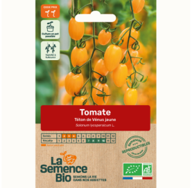 3,30 €Descriptif : la tomate Téton de Vénus jaune est une variété mi-précoce qui produit des fruits jaunes à chair ferme contenant peu de graines, d’un poids de 80 à 100 g. Celle-ci est atypique par sa forme en cœur avec une belle pointe. Excellente qualité gustative à la saveur douce et agréable.