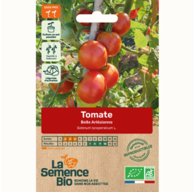 Descriptif : la tomate Belle Arlésienne est une variété ancienne, originaire d’Arles. Elle produit des petits fruits ronds, rouges, de 40 à 80 g à la peau lisse ayant une bonne résistance au fendillement. Variété au feuillage de pomme de terre. Idéale en salade !