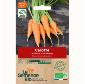 3,30 €Descriptif : la carotte de Colmar à Coeur Rouge 2 est une variété tardive qui produit des racines longues et dépourvues de cœur. Très colorée et très savoureuse, elle est adaptée aux récoltes d’automne et d’hiver.