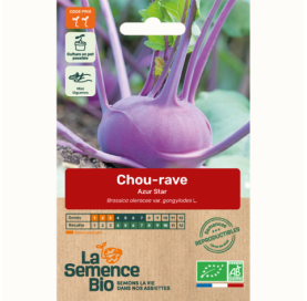 3,30 €Descriptif : le chou-rave Azur Star produit une petite rave ronde aplatie à écorce bleu mauve et à la chair blanche très tendre. Une merveille pour toutes les saisons.