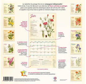 Au fil des mois, on retrouve une liste des fruits et légumes de saison, les préconisations du calendrier lunaire, les travaux à réaliser au jardin (entretien, semis, plantations, récoltes…), les repères phénologiques, mais aussi les jours fériés, les vacances scolaires, etc.