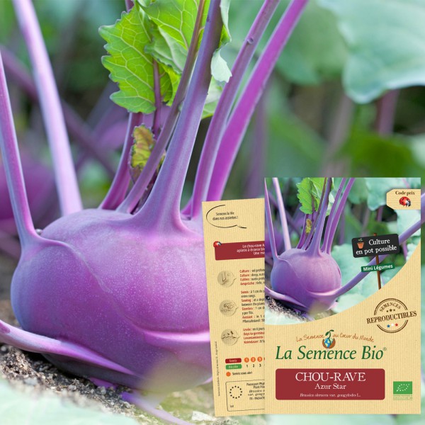 Descriptif : le chou-rave Azur Star produit une petite rave ronde aplatie à écorce bleu mauve et à la chair blanche très tendre. Une merveille pour toutes les saisons.