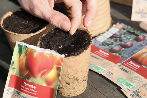 • Semez des graines en surface puis recouvrez-les de terreau. Tassez légèrement pour assurer un bon contact entre la graine et le terreau.