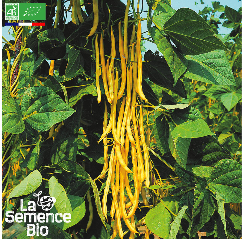 Descriptif : le haricot beurre à rame Neckargold est une variété mi-précoce, il produit de longues gousses jaune beurre charnues, de 23 à 25 cm, sans fil, savoureuses et fondantes. Hauteur : 200 cm.