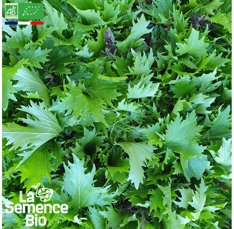 Descriptif : les jeunes pousses Mizuna sont une variété très précoce d’origine japonaise. Leurs feuilles sont vert foncé, finement déchiquetées et érigées. Elles sont douces, croquantes et légèrement poivrées. Idéal en salades composées.